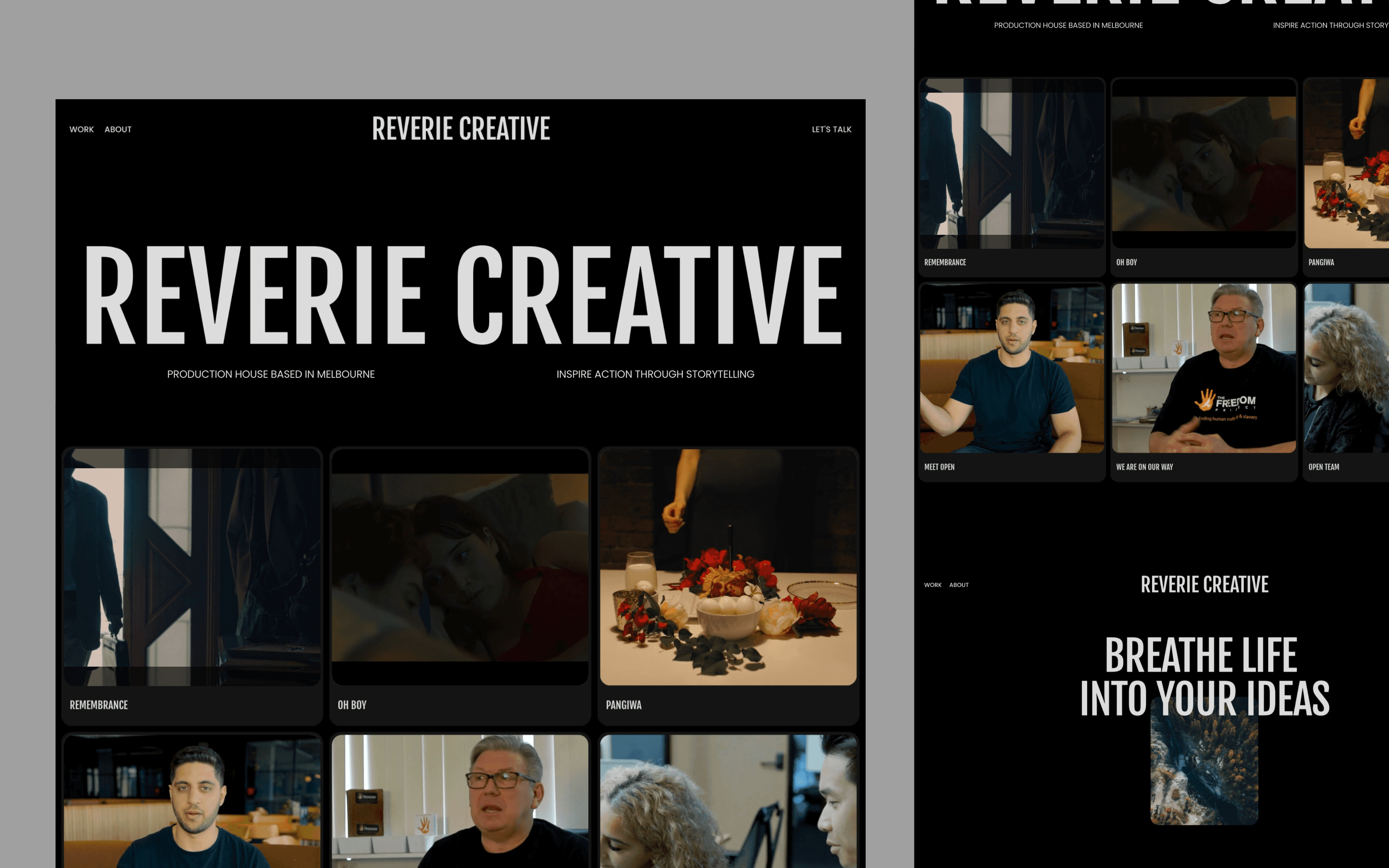 The key challenge lay in crafting a memorable and engaging website design. The focus was on showcasing Reverie Creative's impressive portfolio and highlighting their talent for bringing meaningful stories to life.